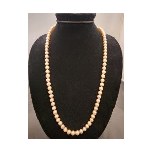 1 Pink cultured fresh water Pearl necklace 35" long, 9mm with a toggle clasp. $750.00 ITEX 6 strands available.2. Multi-color pink, white and peach cultured fresh water Pearl necklace 18" with tog