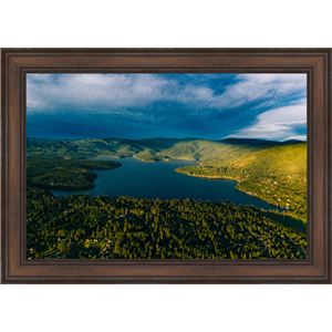 20x40 Fine Art Canvas of Hayden Lake framed with a floating light brown frame. Custom order available including size, canvas, metal or different frame options. Features Hayden Lake. Named after